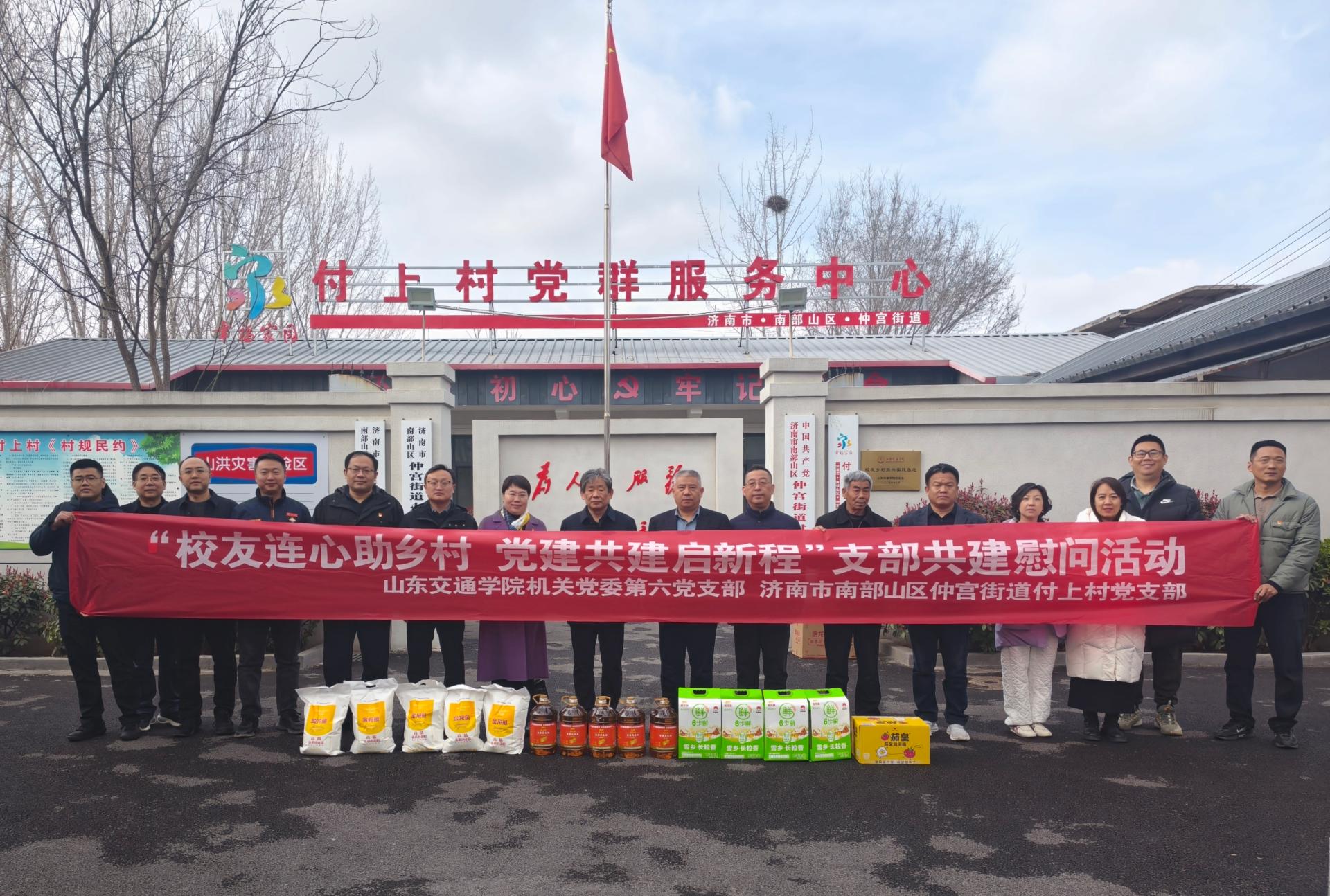 3月18日下午,机关党委第六党支部组织党员代表赴校友帮扶村、济南市南部山区仲宫街道付上村,开展“校友连心助乡村 党建共建启新程”共建慰问活动。学校党委委员、副院长王保群参加活动。